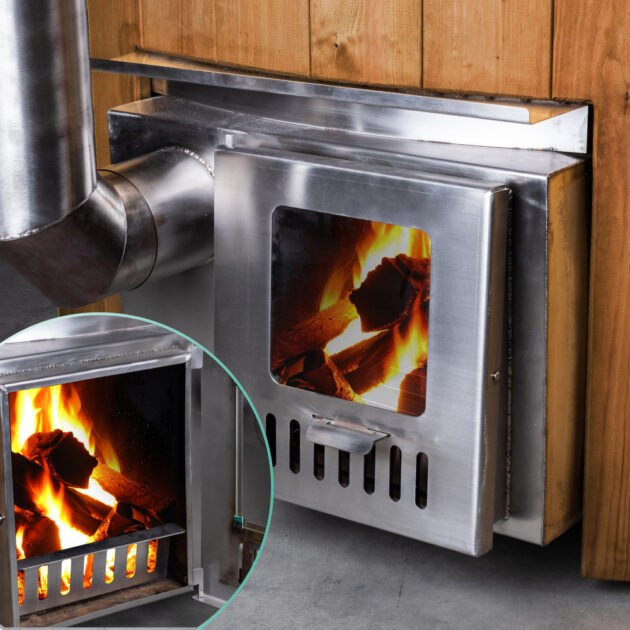 • Wood-burning heater made from chemical-resistant stainless steel – either V2A (AISI 304) or V4A (AISI 316)
