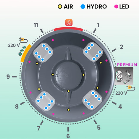 8 air jets & 8 mini multi-colored underwater LED
