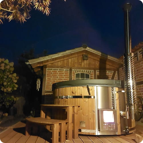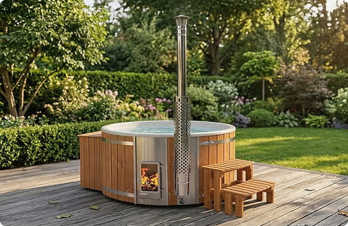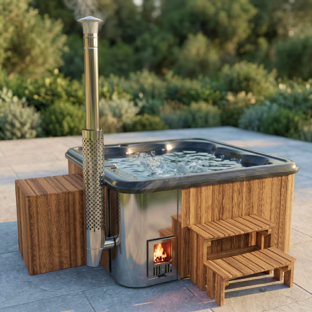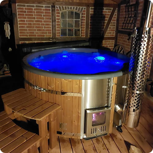 Premium Sandfilter Wood Fired Hot Tub with Jets | Integrated stove AISI 316 | 24 Hydro jets | 4–6 seater