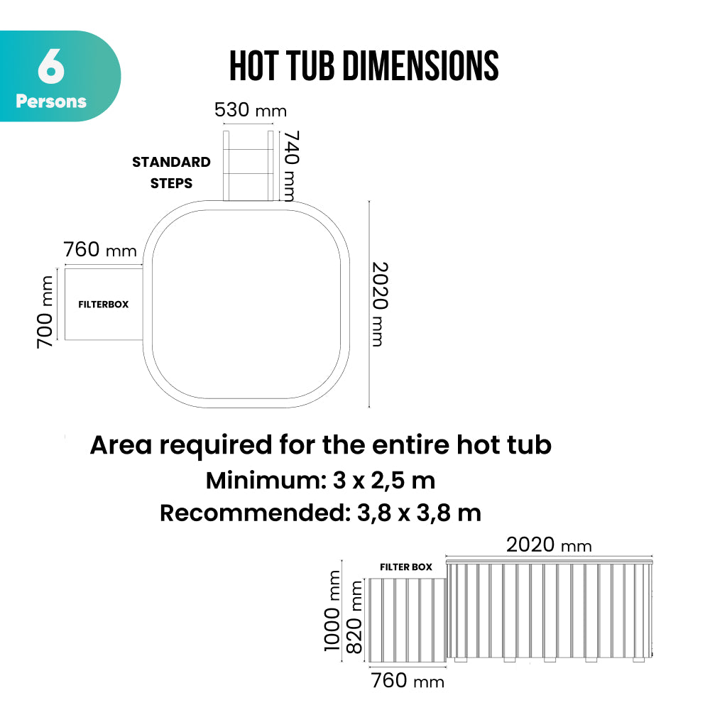 Configure Square Wood Fired Hot Tub for 4-6 Persons | Integrated Heater