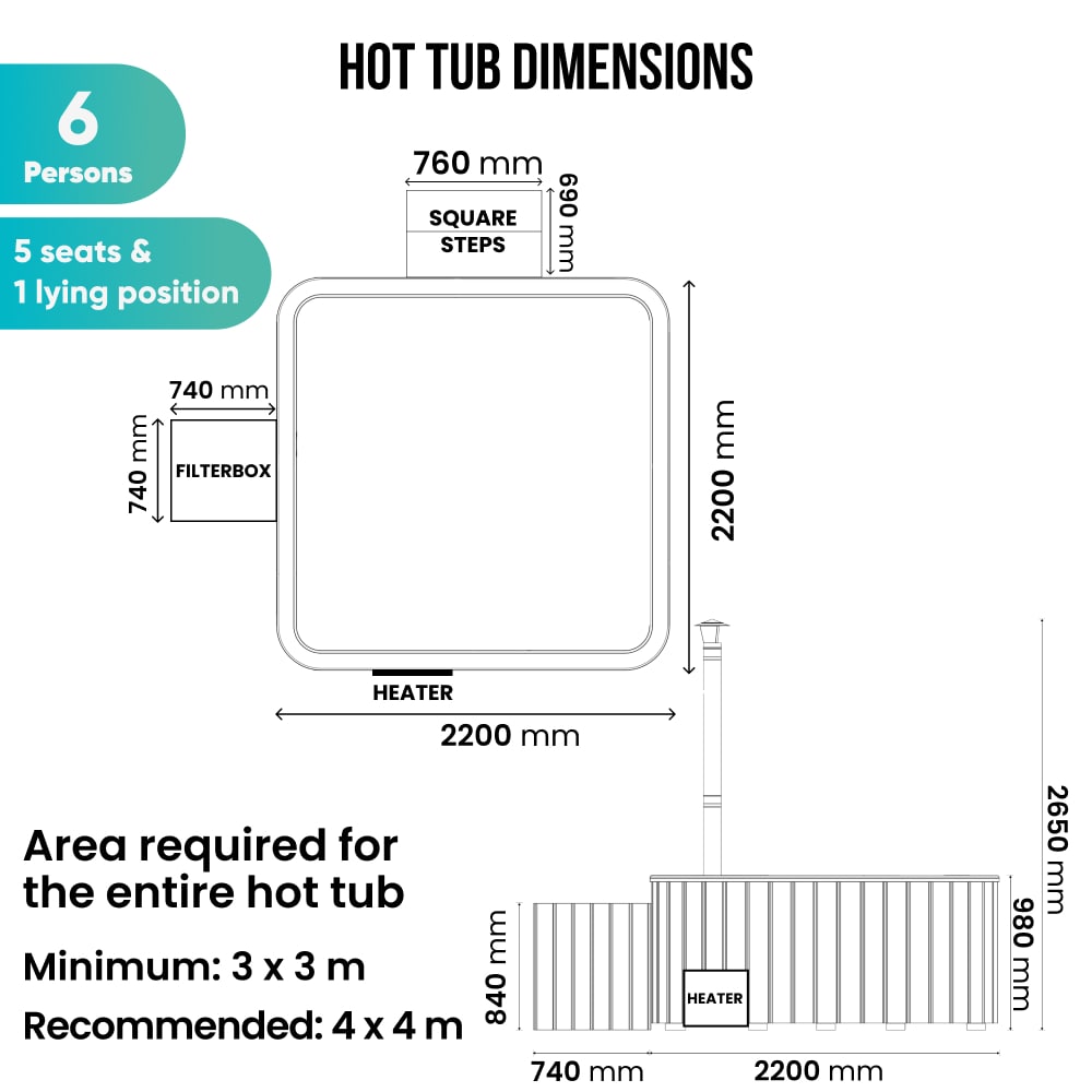 Premium Sand Filter Square Lounge Wood Fired Hot Tub | Best Configuration