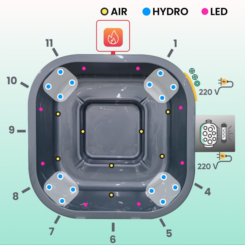 • Air jet massage system, 8 jets, 0.7 kW   (£ 330)
