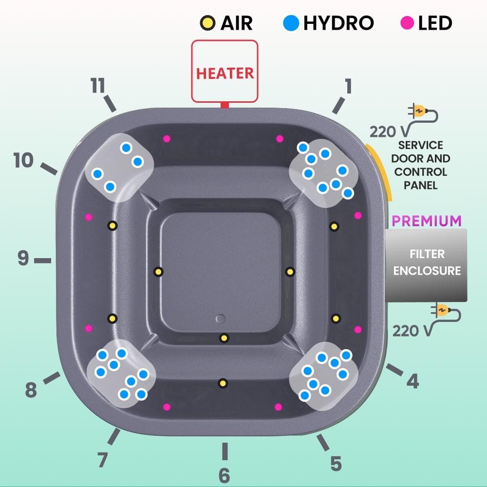- Hydro-massage system, targeted massage 28 jets, four pumps (£ 1225)
