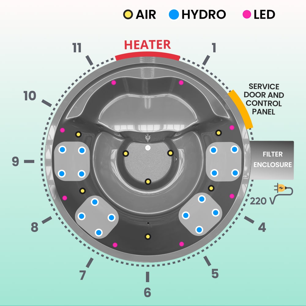 Hot tub with a grey insert. This configuration includes: