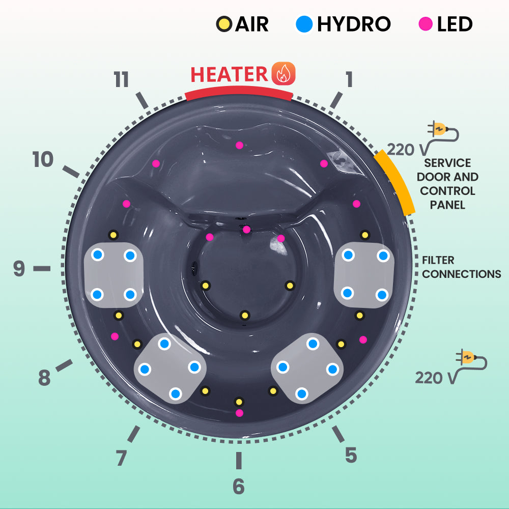 All-inclusive hot tub with a fibreglass insert. This configuration includes: