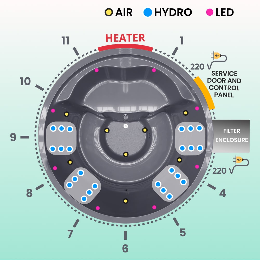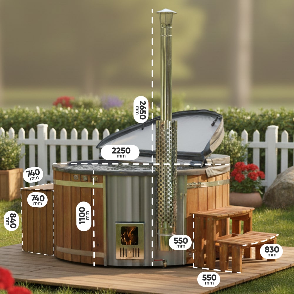 Wood Fired Hot Tub with Jets | Integrated Horizon™ stove sand filter & UV-C | 16 Hydro jets | 4–8 seater